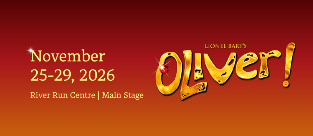 We are excited to share with you the set of shows coming up for the 2026-27 season. Starting with Oliver on the Main Stage at River Run Centre November 25-29, 2026. Then, Once Upon A